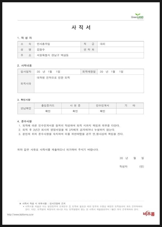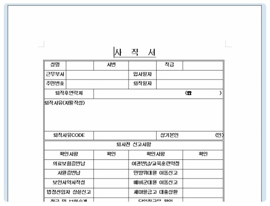 ▶ 무료 사표 양식 다운
