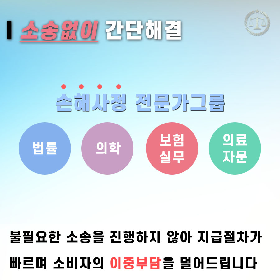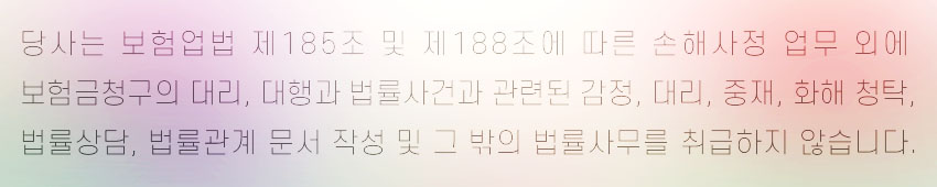 문제 해결이 어렵다면 저희와 같은 손해사정 전문가 그룹에 도움을 요청하는 것도 한 방법이오니 참고하시기 바랍니다.