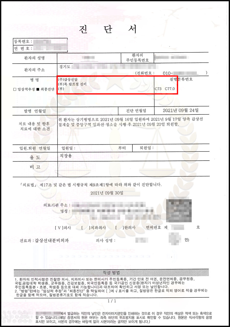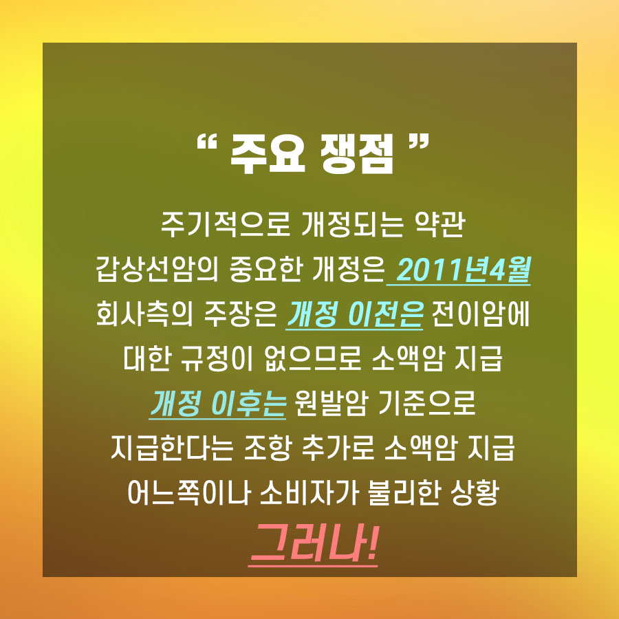 여기서 의문이 발생할 수 있습니다.같은 종류의 갑상선암 림프선 전이에도 가입 시기에 따라 다르게 적용될 수 있다는 것이다. 이 때문에 분쟁이 발생하는 것입니다.