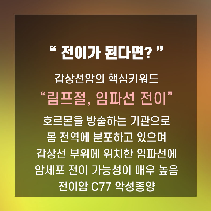 2) 전이되면? 갑상선암의 핵심 키워드는 암 자체보다 ‘림프절 또는 림프선 전이’에 있습니다.