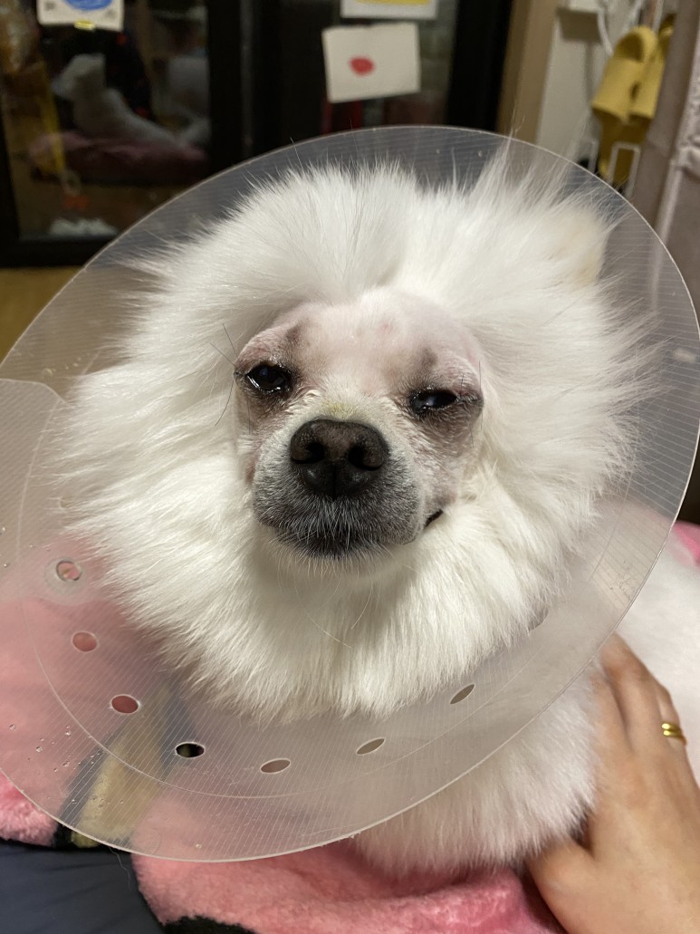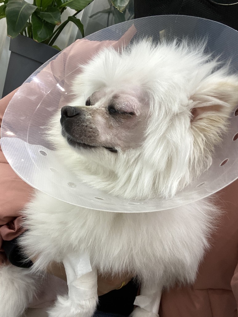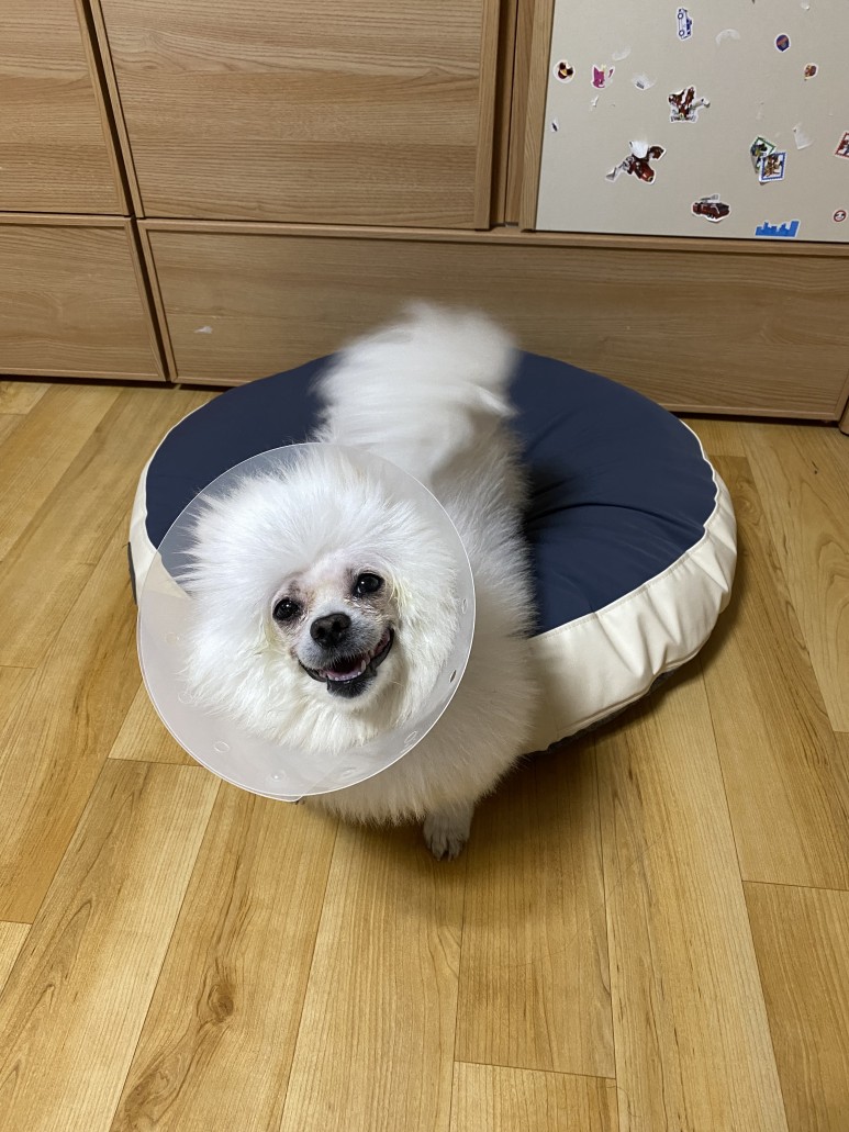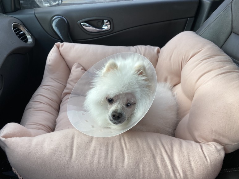 수술 전에는 만약을 위해 산책도 하지 않았고 수술 당일 오전에 목욕시키고 안약을 넣어 출발수술을 해서 당분간 목욕과 미용을 할 수 없으니 반드시 수술 전날 시키도록.