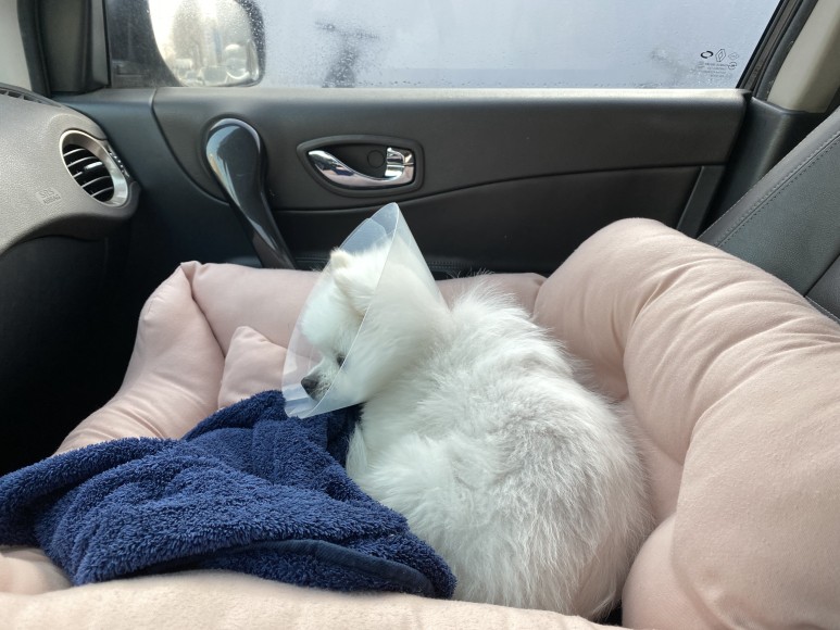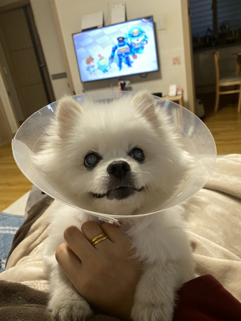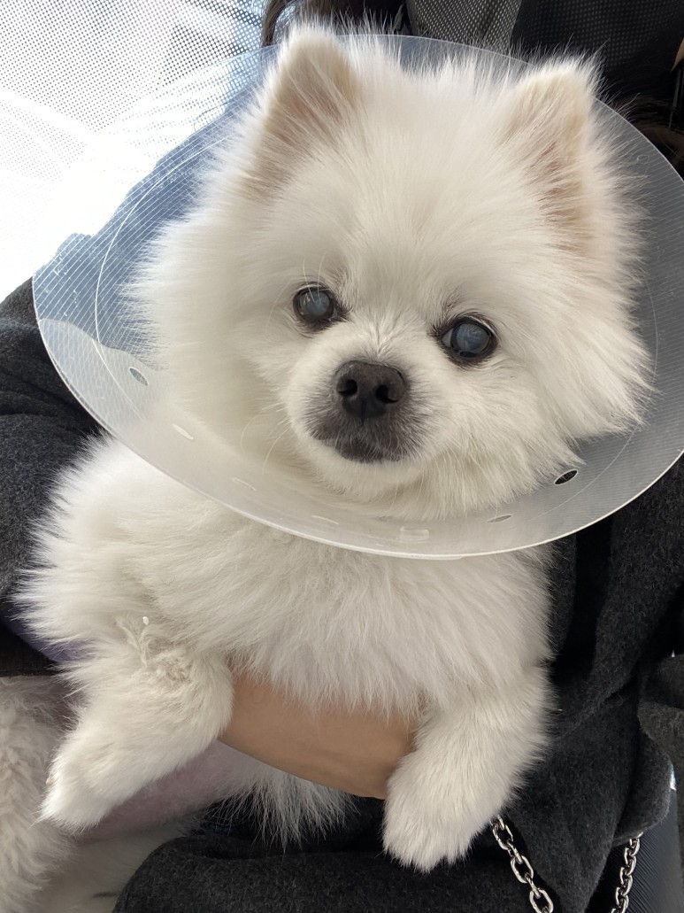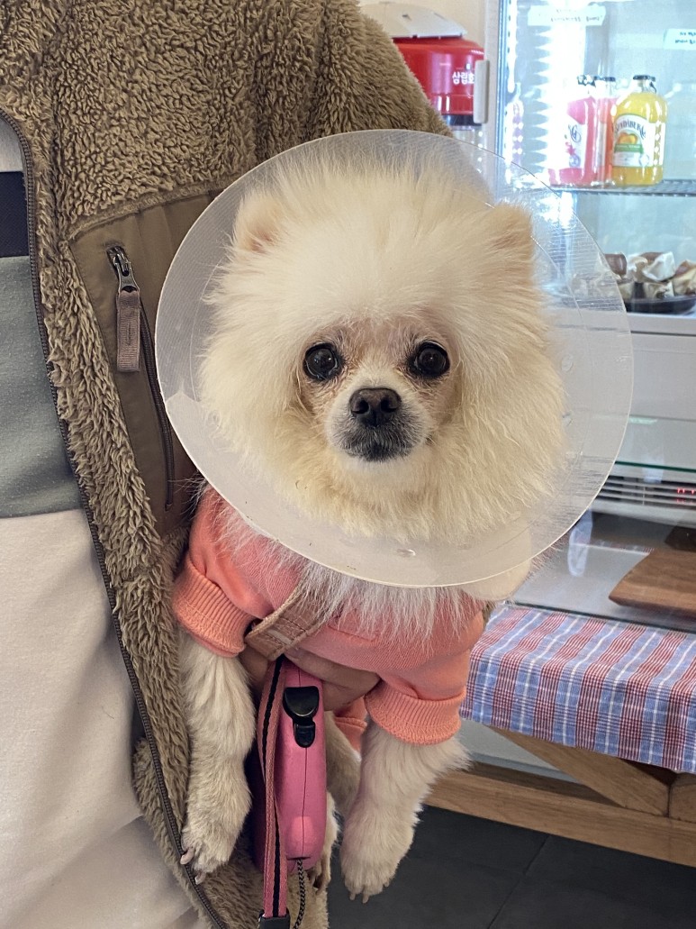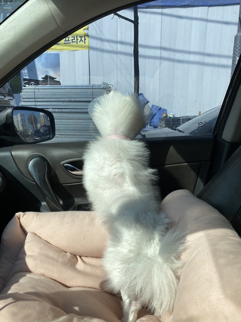 수술 전에는 만약을 위해 산책도 하지 않았고 수술 당일 오전에 목욕시키고 안약을 넣어 출발수술을 해서 당분간 목욕과 미용을 할 수 없으니 반드시 수술 전날 시키도록.