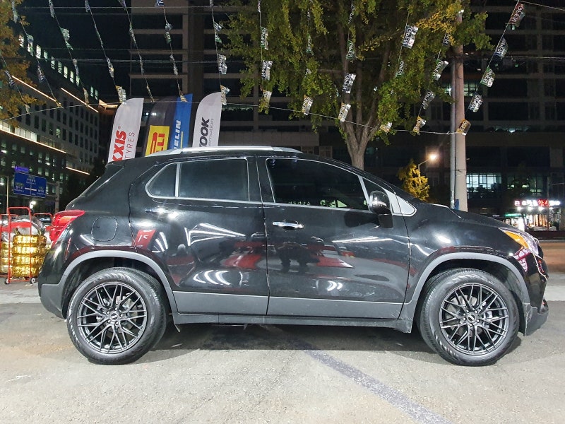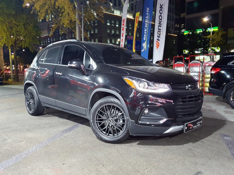 트랙스 18인치 규격에서는 215/55R18이지만 폭을 조금 크게 해서 장착하는 사례로는 225/55R18 규격이 주를 이루고 있습니다.