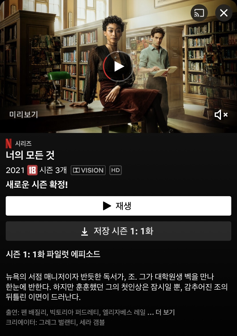넷플릭스의 드라마 시리즈 ‘너의 모든 것(YOU)’ 시즌4의 여주인공이 공개됐습니다 당신의 모든 것은 2018년 시즌1을 시작으로 2021년 10월 시즌3까지 종료가 됐습니다 매 시즌마다 여주인공이 바뀌기 때문에 이번 시즌 여주인공도 새로운 얼굴이 등장할 것임을 암시했습니다.
