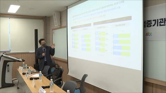 한국방송학회 봄 정기학술대회에서 황선영 연구위원이 발제하고 있다. [사진 JTBC] 건전한 미디어 환경 조성을 위해 새로운 통합 시청 지표가 만들어져야 한다는 제안이 나왔습니다. 오늘(22일) 제주대학교에서 ‘혼돈과 새로운 질서’라는 주제로 열린 한국방송학회(회장 도준호) 춘기 정기학술대회에서입니다.