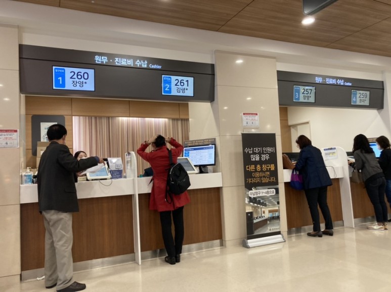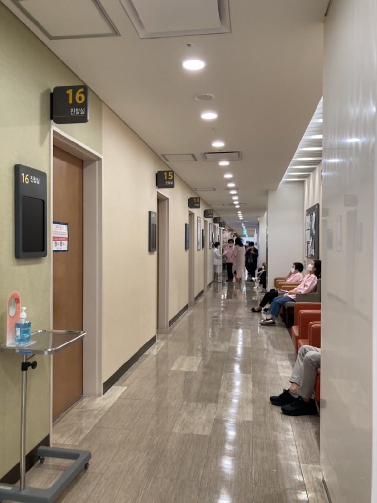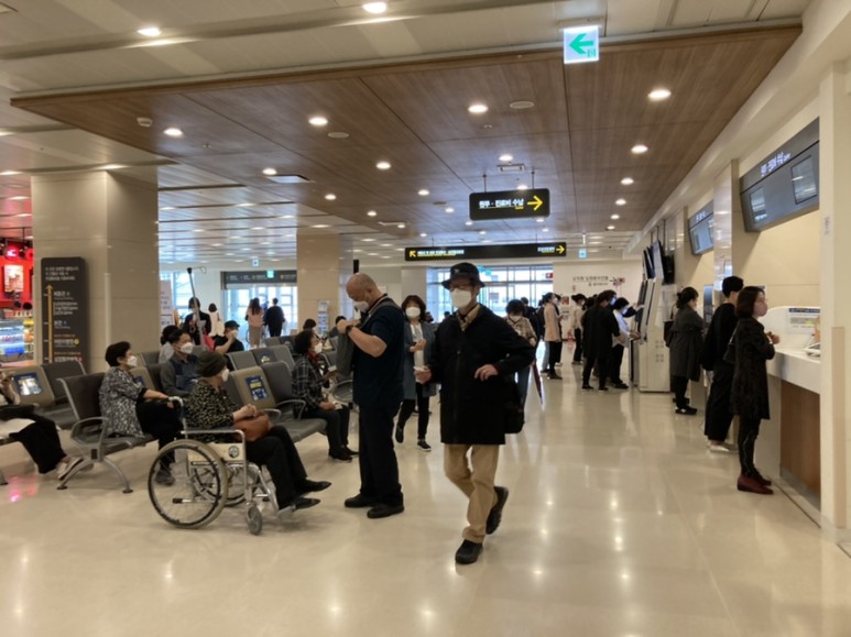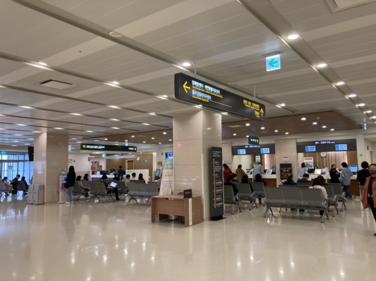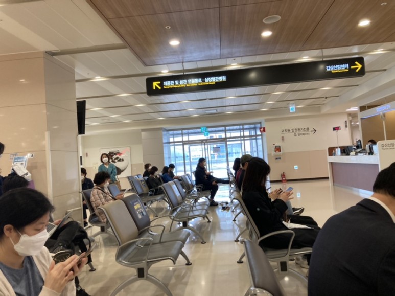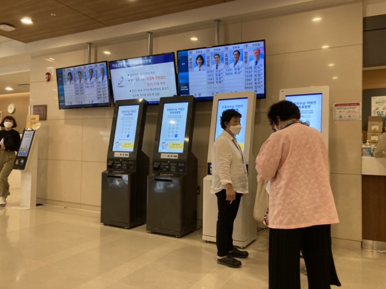 이번에 와보니까 셀프 도착 확인하는 기계가 있네요 편리하긴 하지만 바로 접수처에 사람이 접수하지 않는 그날이 오는군요.