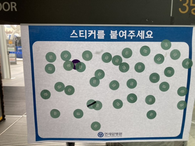 출입구에서 큐어로 먼저 자신을 알리고 체온체크하고 방문 스티커를 붙이고 통과! 코로나에서 어딜 가든 불편함이 ㅠㅠ 빨리 끝나길~