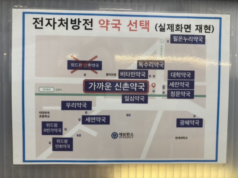 약 처방전을 가지고 신촌 거리에 있는 약국에 가시려면 신촌 세브란스 암병원을 나오셔야 합니다. 약국이 정말 많아요. 길을 건너 처음 보이는 약국에 많이 들어가지만 대기 시간이 길어서 기다리고 있습니다. 좀 더 안쪽으로 가서 한가한 약국을 추천할게요.