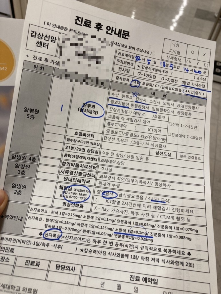 갑상선암 수술 후 4년차 외래 진료로 가시면 됩니다서울특별시 서대문구 연세로 50-1