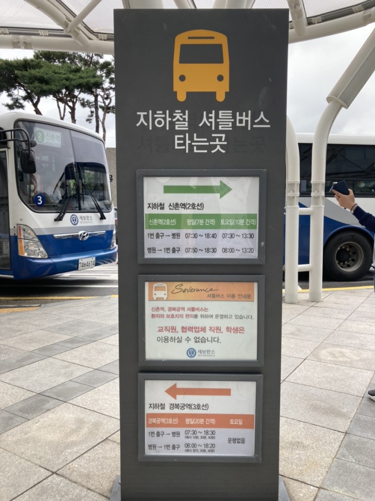 세브란스 병원 셔틀버스 시간과 타는 곳이에요 셔틀을 이용하실 분들은 참고하시기 바랍니다.
