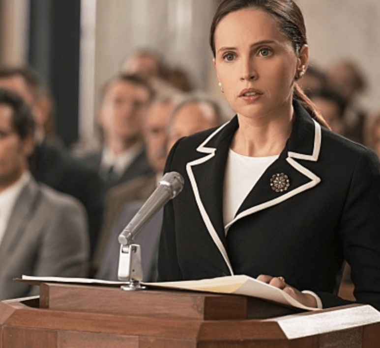영화는 여성의 권리를 누구나 평등하게 누릴 수 있도록 한 인물 루스 베이더 긴즈버그의 이야기를 영화로 옮긴 것이다. 성차별을 인정하는 법과 소수자에 대한 편견에 맞서 강력히 반대하고 올바른 사회로 가기 위한 튼튼한 토대를 마련한 미국 여성 대법관 루스 베이더 긴즈버그가 젊은 시절 대단한 업적을 그린 작품이다. 영화는 1952년 그가 하버드 로스쿨에 입학하면서 시작된다. 이후 성차별별로 구분되는 법을 바꾸는 재판을 해 당시 겪었던 아픔을 자세히 표현했다. 로스쿨에서도 엄청난 성적으로 수석 졸업하지만 로펌에서는 그를 받아들이지 않고, 그는 로펌이 아닌 대학에서 학생들을 가르치기 시작한다. 병든 어머니 병간호를 하며 살아왔고, 남자라는 이유로 법적 보호를 받을 수 없는 의뢰인을 만난 그녀, 법적으로 부양수당을 받을 권리는 여성만이 갖고 있다는 사실을 거꾸로 밝히고, 사회의 편견에 맞서 힘겨운 싸움을 시작한다.