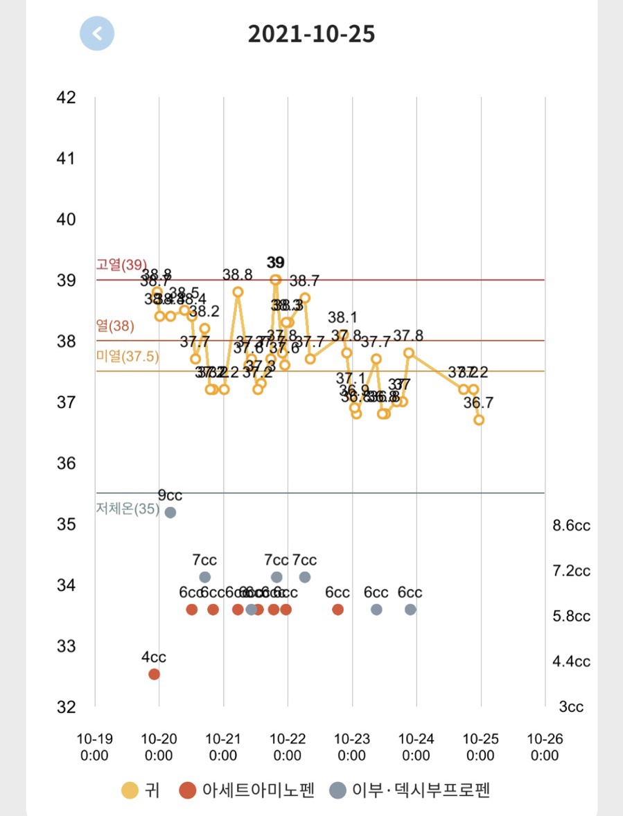 이런식으로어떤약을얼마나먹였는지몇시간마다10체크를했는지지금10체크를해야하는시간까지알려주는아주유용한앱이에요!라고이걸보니눈물이날것같네요.3일째가 되자 드디어 해열제가 통하기 시작했습니다.