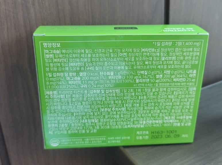 그리고 1일 1정(1000㎍)의 물과 함께 섭취하는 간편한 복용방법으로 2개월분으로 구성되어 있습니다. GMP 인증을 받은 전문 생산업체로부터 식품의약품안전처의 승인을 받은 제품입니다.
