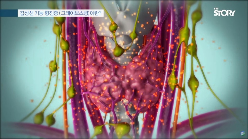 자가면역항체가 지속적으로 갑상선을 자극하여 갑상선 호르몬 분비량이 증가하는 병입니다.