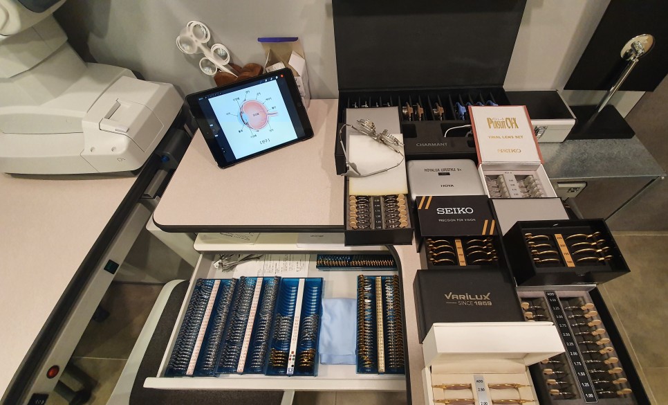 요즘 운전할 때 내비게이션이 잘 안 보인대요 크게방향만보면되지만중간중간세부방향을봐야할때보이지않고,운전중에전화가오면누구한테전화가왔는지확인할수없다고하네요. 다초점 안경을 한 번 써보고 싶은데 어떤 느낌인지 모르겠다고 합니다. 정확한 시력 검사 후 다양한 등급의 트라이얼 렌즈로 다초점 안경을 경험할 수 있습니다. #녹내장의 다초점