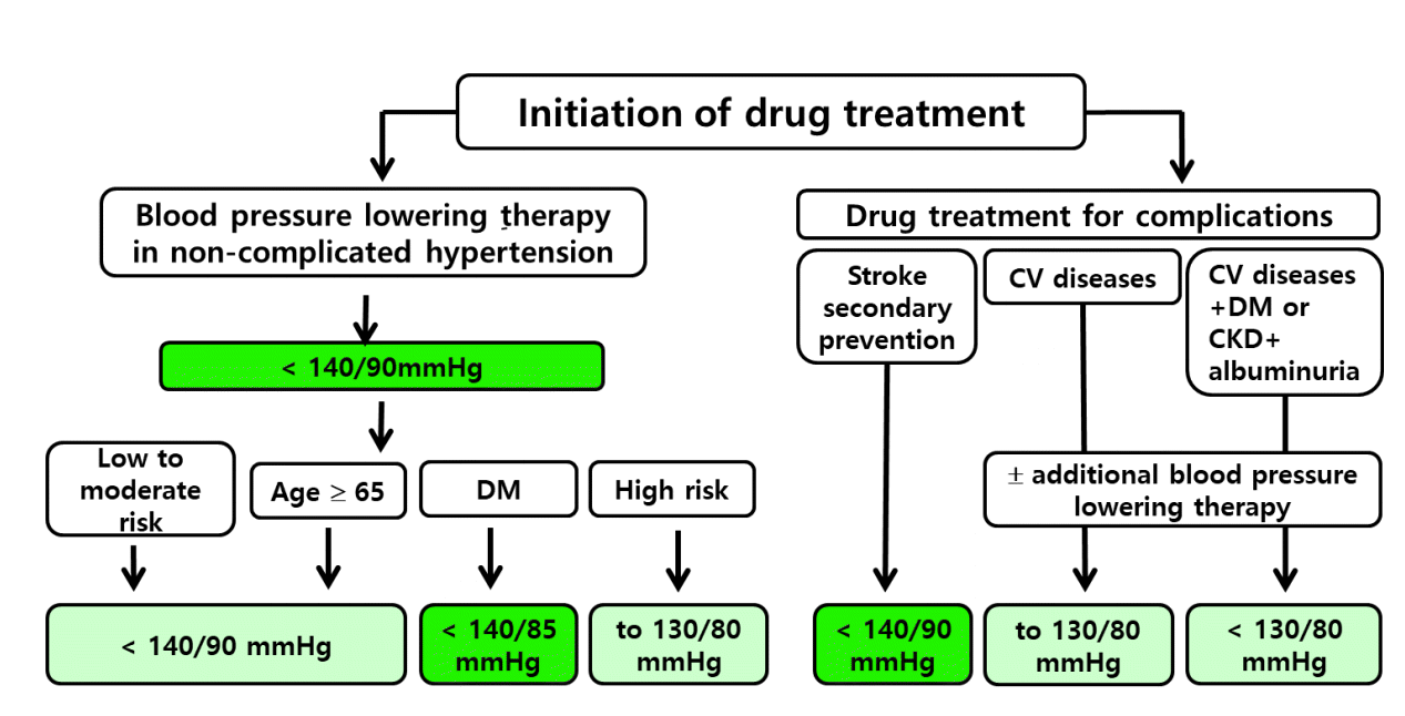 Reference : https://doi.org/10.3904/kjm.2018.93.5.447KoreanJMed> Volume93(5); 2018> Article Roadmapto diagnosis Korean JMed 2018; 93(5): 447-451. DOI : https://doi.org/10.3904/kjm.2018.93.5.447 새로운 고혈압 가이드라인에 따른 고혈압 진료 이혜영 서울대 의과대학 내 과학교실 Evaluation and Management of Hypertensivetients According to New Hypertension Guideline Hae-YoungLee Depa…doi.org