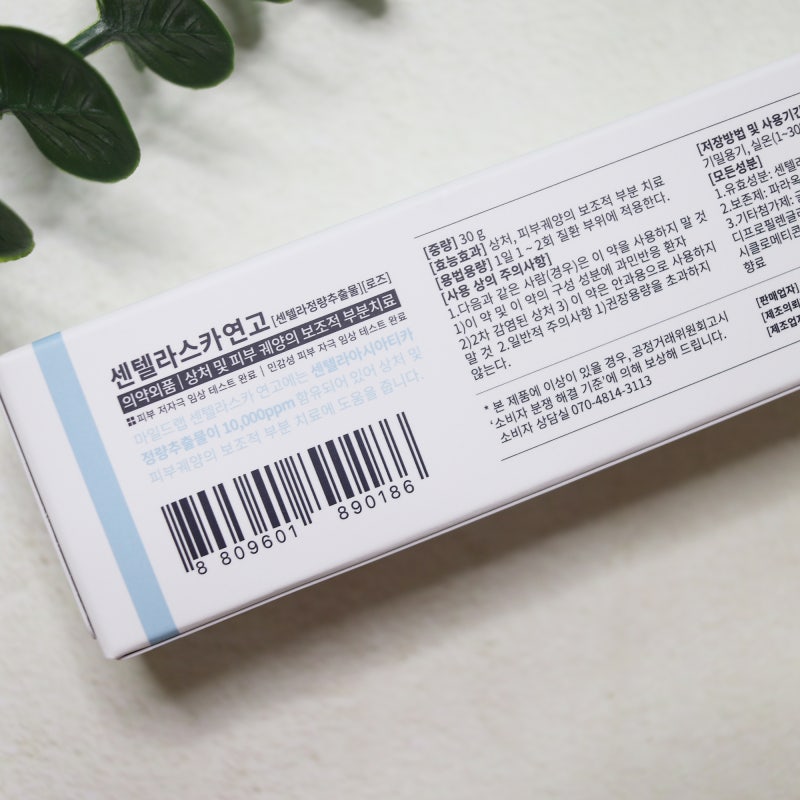 고민 부분에 넓게 바르면 된대요.연고에 센텔라아시아티카 유효성분 10,000ppm이 함유되어 있어 매우 든든합니다.센텔라아시아티카정량추출물이피부에수분공급,염증완화,콜라겐생성에도움을주고고민했던여드름자국이연해지도록케어해줍니다.