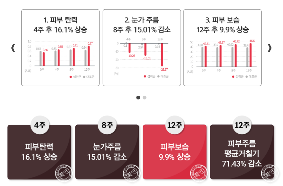 인체 적용 시험을 통해 증명된 피부 개선 효과를 위해 화려함을 믿고 선택할 수 있습니다.