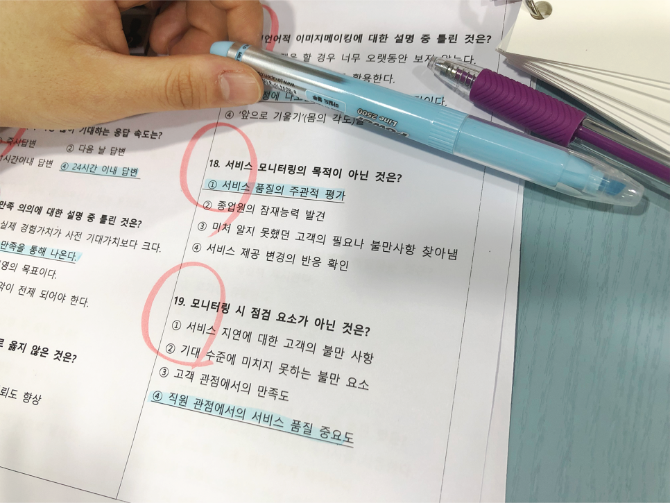 저도 틀린 부분이 거의 없는 상태에서 기출문제를 다룰 수 있었습니다. 덕분에 고득점으로 CS강사 자격 취득을 완료할 수 있었습니다. 눈앞에 주어진 일에만 집중해서 이런 쾌거를 이룰 수 있다니 너무 좋았어요