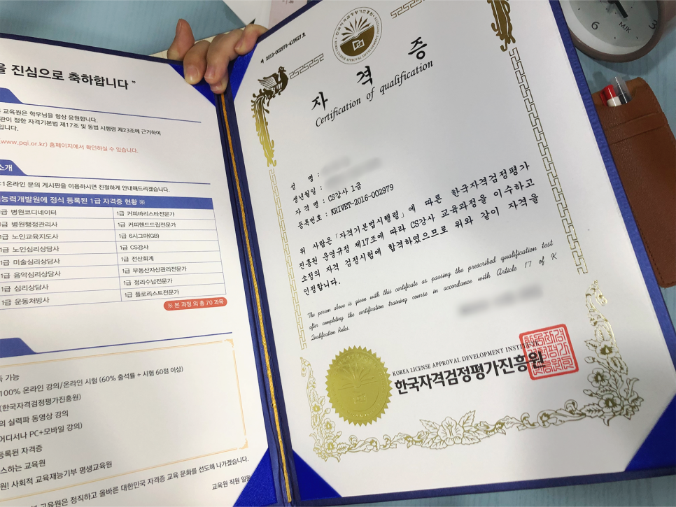 시험을보고나서는100점기준으로60점을넘어야실물CS강사자격증을갖게되는것입니다. 가야 할 길이 좀 멀었지만 전 과정이 온라인에서 이뤄지는 만큼 열심히 갈 수만 있으면 됐어요.