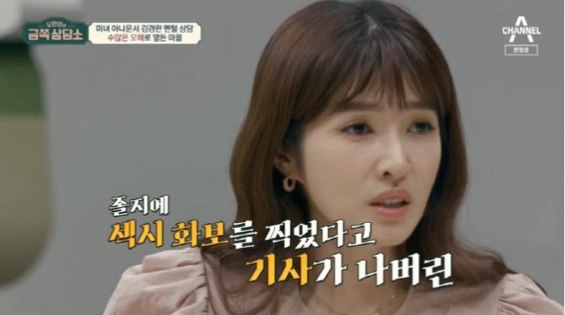 김경란은 「패션 화보를 찍었는데, 노출도 없이 긴 드레스였다. 근데 섹시 화보를 찍었다는 식으로 나오던데? 내 뒤에서, 한 선배가 「요즘 애들은 그렇게까지 하고 싶어해?」 「라고 말씀하셨다.갑자기 깨어나고 짜증나는 아이가 됐다고 털어놨다.