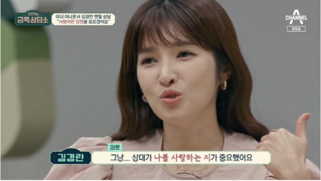 김경란이 자신의 감정에 솔직하지 못해 많은 시행착오를 겪었다고 털어놓았다.