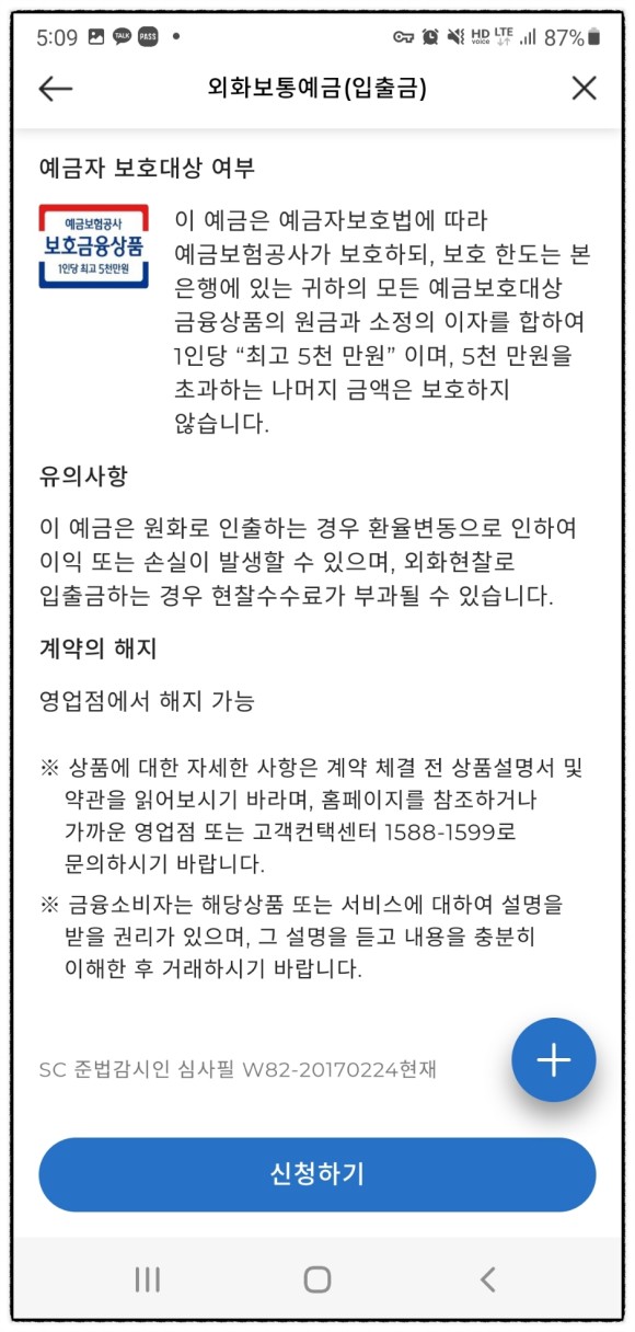 3월 초 인터넷에서 어떤 계좌가 좋은지 확인해 보니 sc제일은행이 300달러까지 입금 수수료가 무료라는 것을 알고 sc제일은행에서 외화 통장을 만들었습니다.