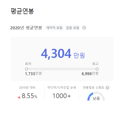 거의 웹디자이너인 회사는 신입기준으로 연봉이 높은 편은 아니에요