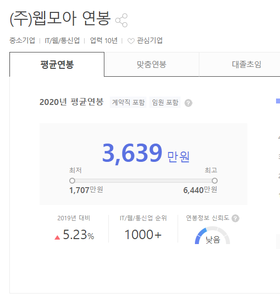 연봉 정보 1. 웹모어 (웹디자이너/웹퍼블리셔)