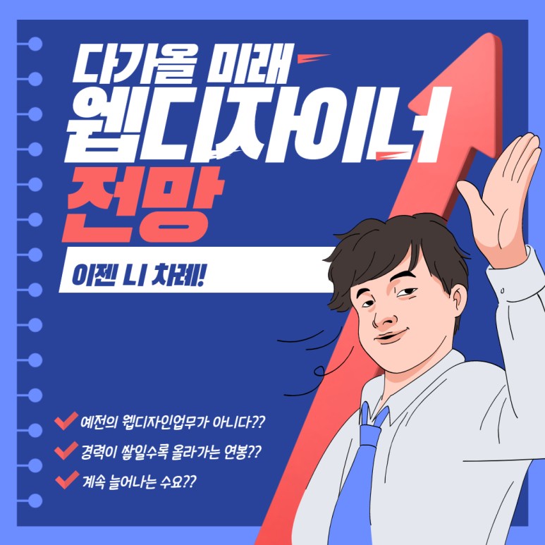 웹디자인으로 경쟁력을 갖추고 살아남기 위해서는 코딩까지 배워야 자신의 실력을 증명할 수 있는 기술이라고 할 수 있습니다!