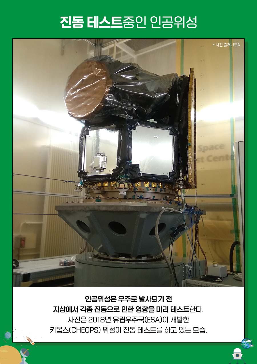인공위성은 어려운 조건 속에서도 자신의 임무를 수행해야 합니다 우주로 올라가는 순간부터 난관입니다 발사체에 실려 궤도에 진입할 때까지 엄청난 충격과 진동을 견뎌야 합니다. 궤도에 진입하더라도 영상 수백 도에서 영하 수백 도를 오가는 극한의 온도 변화를 견뎌내야 하고 끊임없이 쏟아지는 고에너지 입자인 우주선(cosmic ray)을 견뎌내야 합니다. 하지만 이처럼 척박한 외부 환경도 인공위성의 임무를 어렵게 하지만 인공위성 내부 환경으로 인한 영향도 적지 않습니다. 그래서 과학자들은 인공위성 내부의 환경을 개선하기 위해 끊임없이 노력하고 있다고 합니다. 그 노력은 과연 어떤 것일까요?