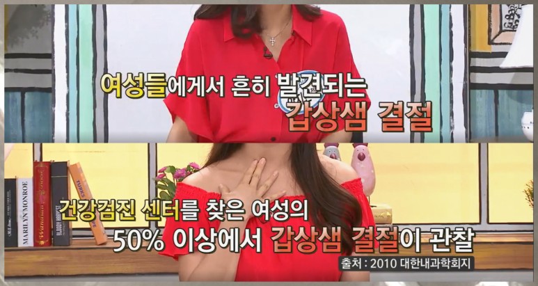 갑상선에 이상이 없어도 목이 길거나 마른 여성에게서 갑상선이 튀어나와 보이기도 하는데요.