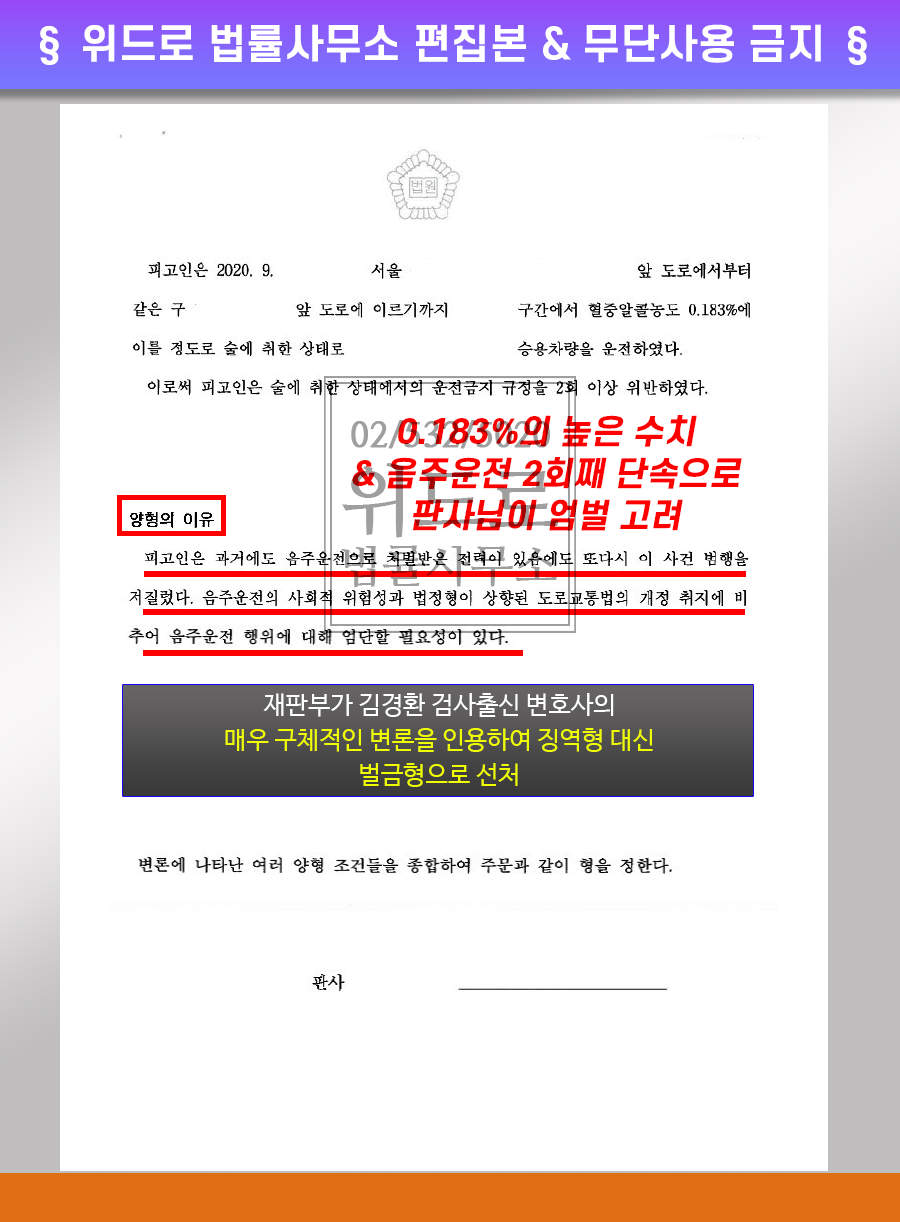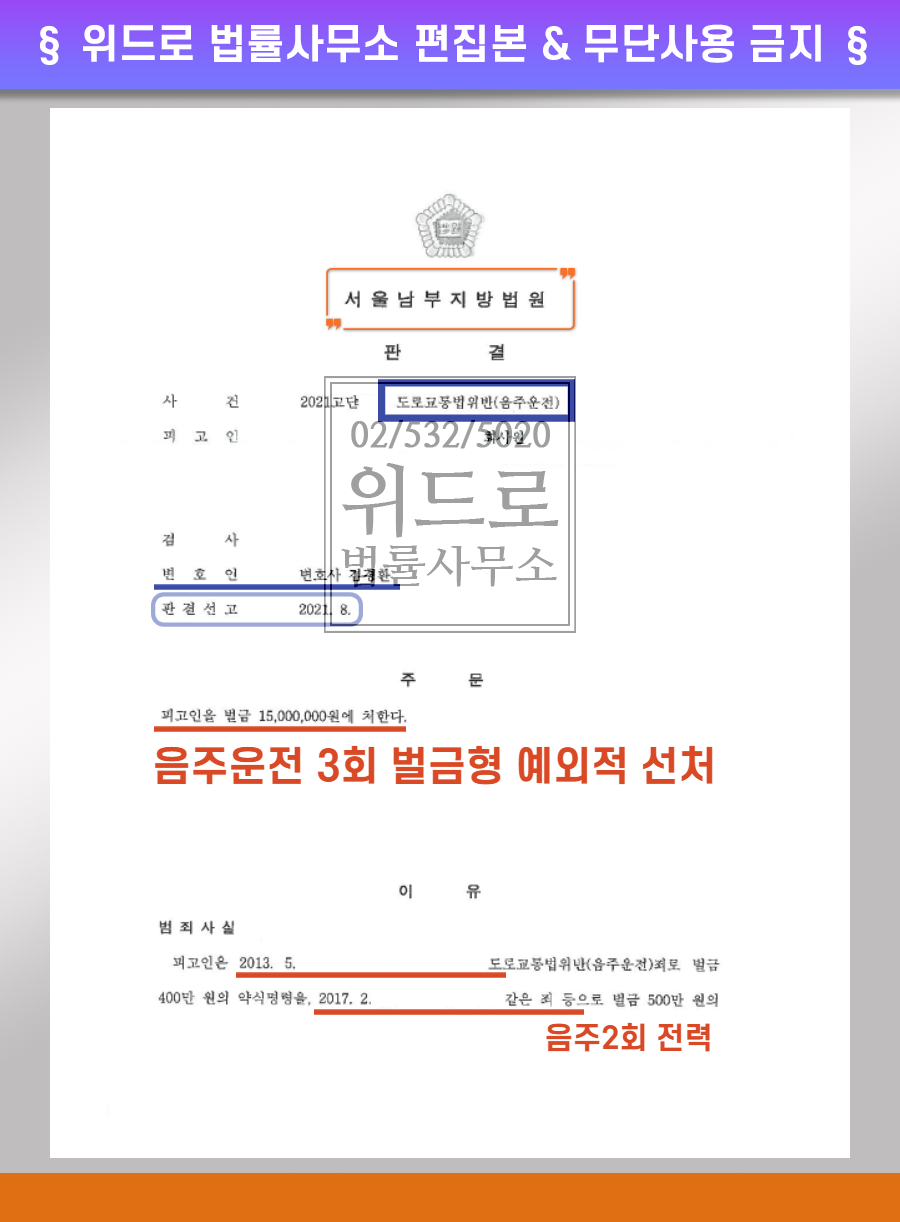 ●서울남부지법의 음주운전 3회 벌금형 예외적 선처