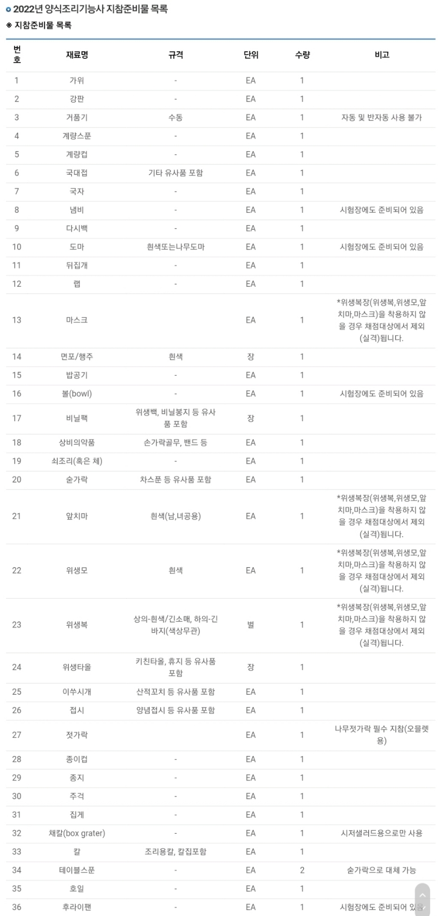 3. 3. 준비물 중 응시자 개인에 따라 과제물을 조리하는데 불필요하다고 판단되는 조리기구는 지참하지 않으셔도 됩니다.