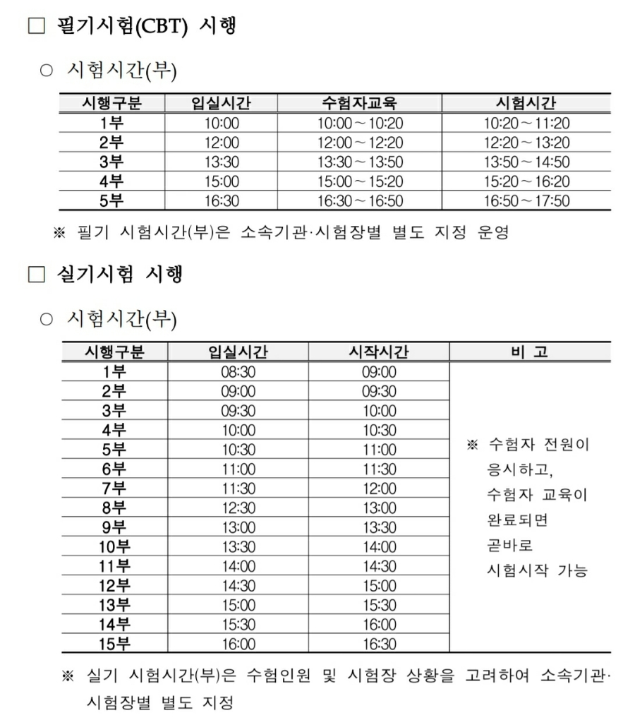 1. 지참 준비물의 수량은 최소 필요수량이므로 응시자가 필요할 경우 추가 지참이 가능합니다.