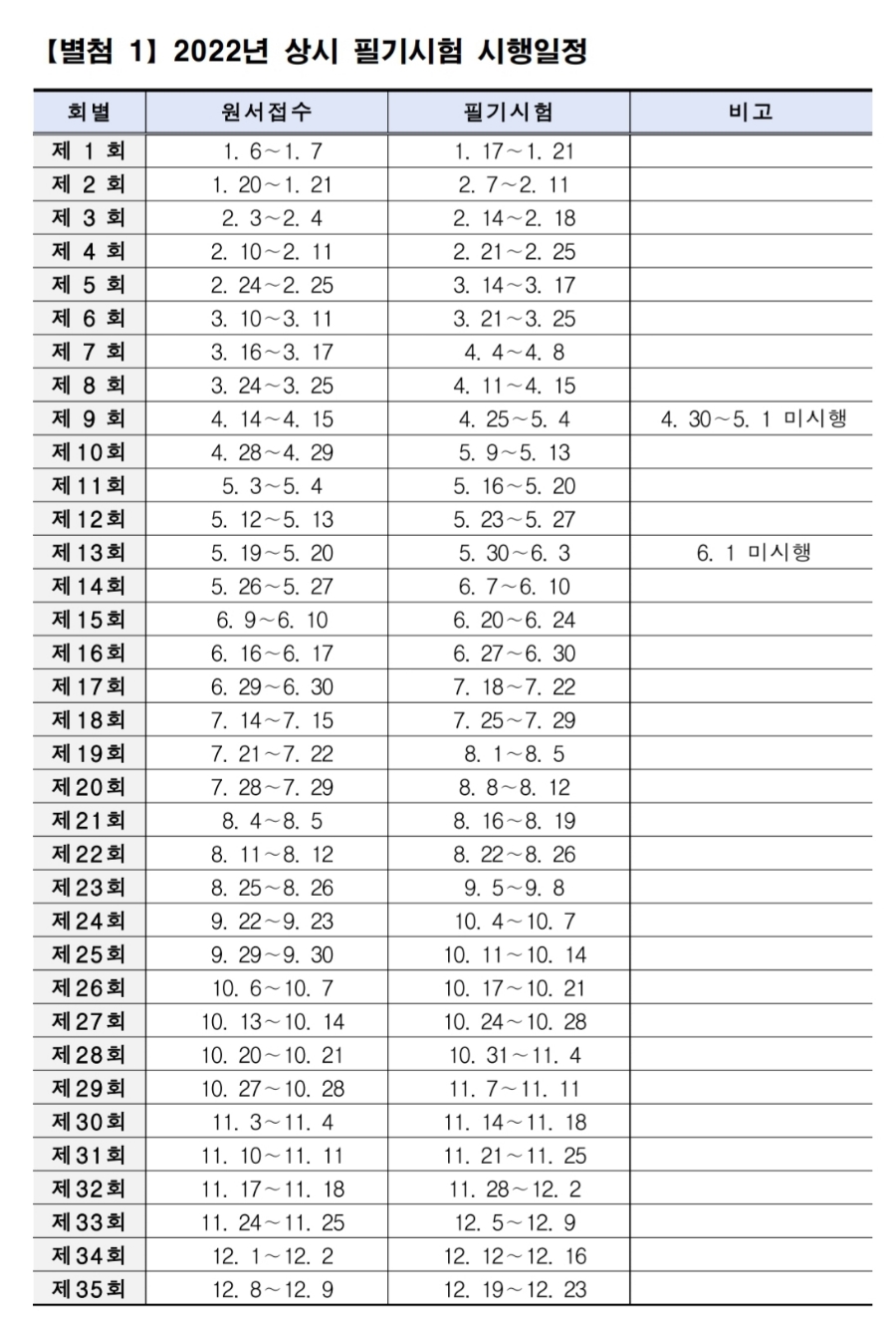 각 회별 원서접수 일정, 필기시험 날짜 확인 가능