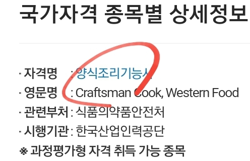 양식조리기능사 자격증 양식조리 메뉴계획에 따라 식재료를 선정, 구입, 검수, 보관, 보존하고 맛과 영양을 고려하여 안전하고 위생적으로 조리업무를 수행하며 조리기구와 시설을 위생적으로 관리, 유지하여 음식을 조리, 제공하는 전문인력을 양성하기 위하여 자격제도를 제정