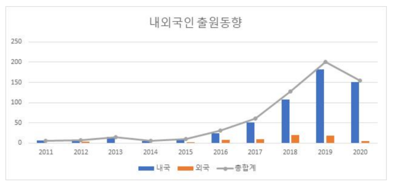 이러한 상황에서 자율주행 분야 인공지능 기술의 국내 특허출원은 매년 15건 이내로 출원이 미미하나 2016년 31건, 2020년 155건으로 2016년 연평균 50% 이상 급증하고 있다.