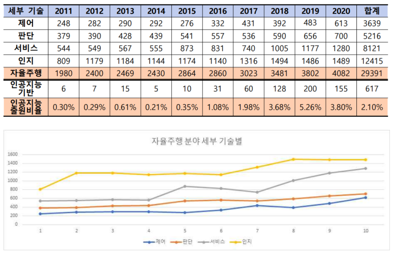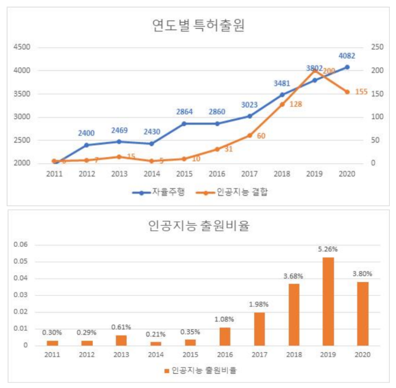 자율주행기술 특허 출원 동향 인공지능(AI) 기반