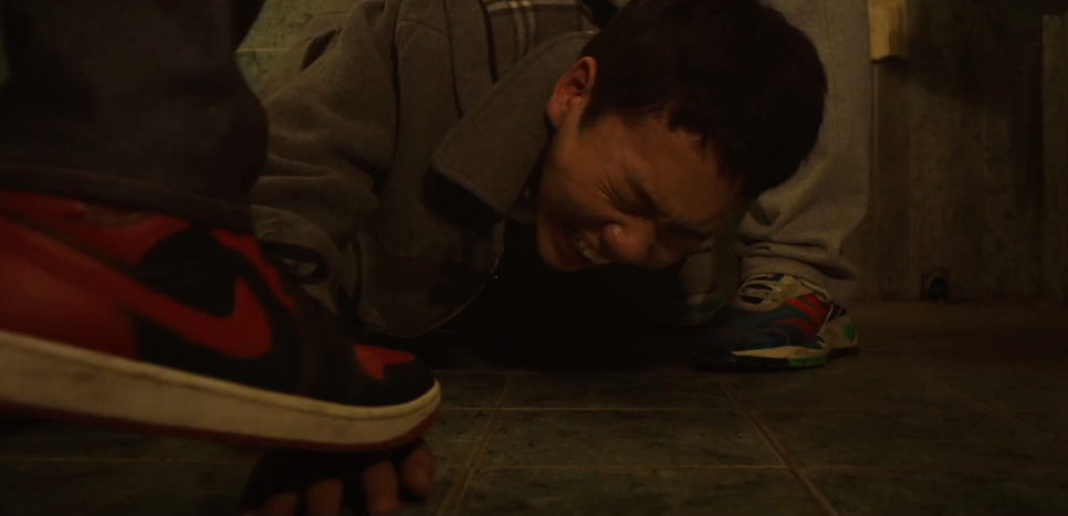 깡패인지 생김새가 양치기처럼 보이는 남자가 있다. 황경민은 학교폭력 가해자 중 한 명을 멀리서 지켜본 것이다. 범행 대상이자 타깃이다. 성인이 되어서도 자신보다 약자라고 생각하는 사람을 서슴없이 폭행하고 즐거워하는 장면을 그대로 목격하게 된다.