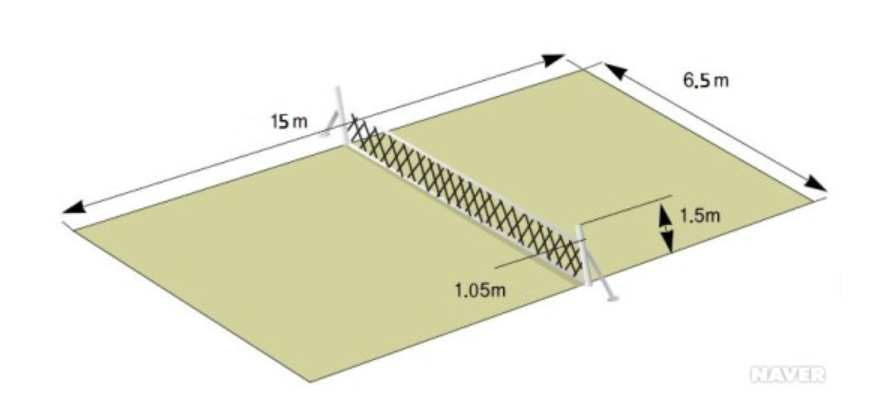 성인 일반부 정식 네트 높이는 1m5cm 즉 105cm입니다~ 보편적으로 네트 앞에 성인 남자가 섰을 때 배꼽 정도 높이가 되거든요! 다만 초등부/여성부/60대 부의 경우 네트 높이가 90cm입니다! 아무래도 여성선수와 초등부의 경우는 몸이 작기 때문에 정식 105cm 네트 높이는 너무 높은 것 같아요~