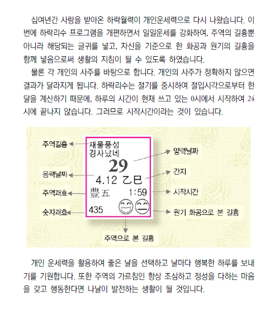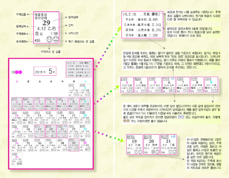 자신의 사주를 넣은 나만의 운세! 매일의 운세가 적힌 1년치 달력을 제작해 드립니다.연초에 주문해야 하느냐구요?아니요. 지금이 6월이면 올해 6월부터 내년 6월까지 13개월치를 만들어 드릴께요.