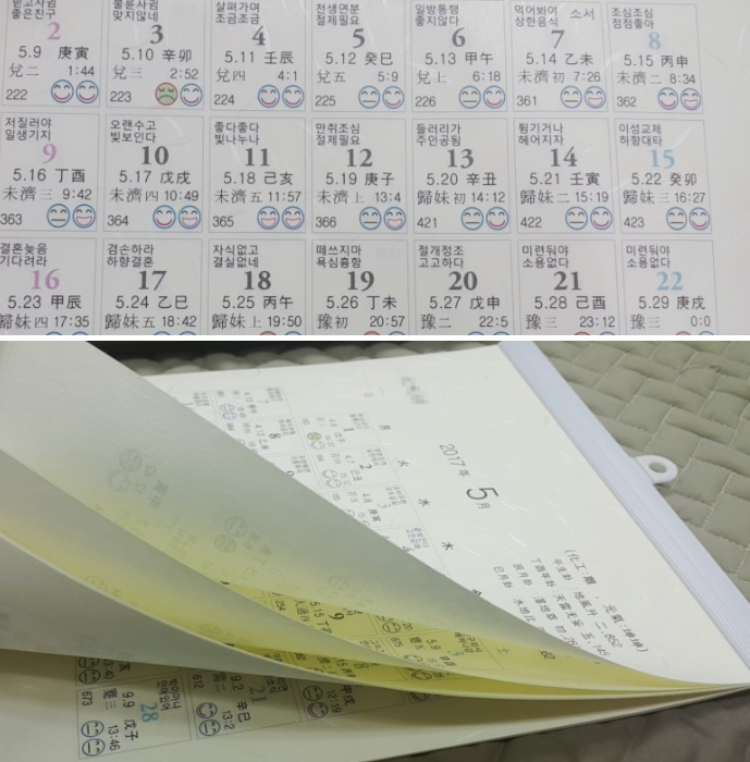이 달력을 보면 어떤 날이 저에게 좋은 날인지 나쁜 날인지 알 수 있기 때문에 핏자국을 빼는 데 유용합니다.