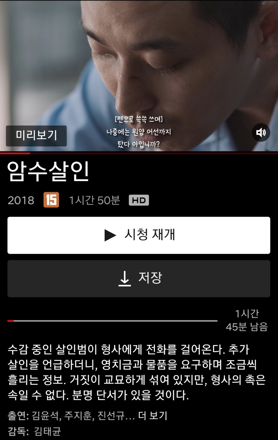 스릴러 영화에서 예고편을 먼저 보도록 조금 첨부합니다.