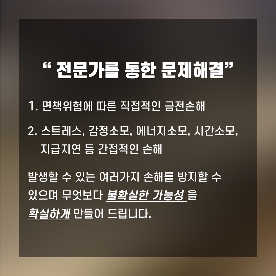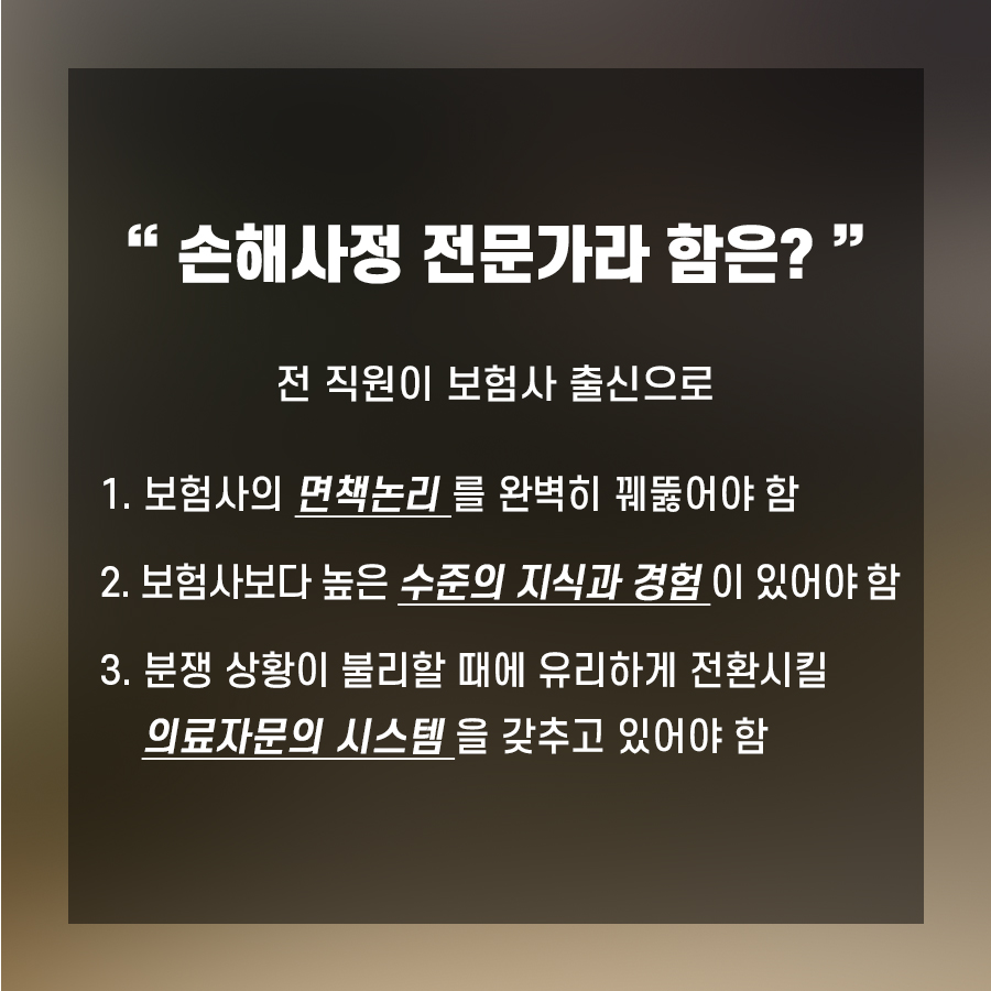 직접 진행하여 난관에 부딪힌 경우 손해사정 전문가의 도움으로 해결할 수 있습니다.