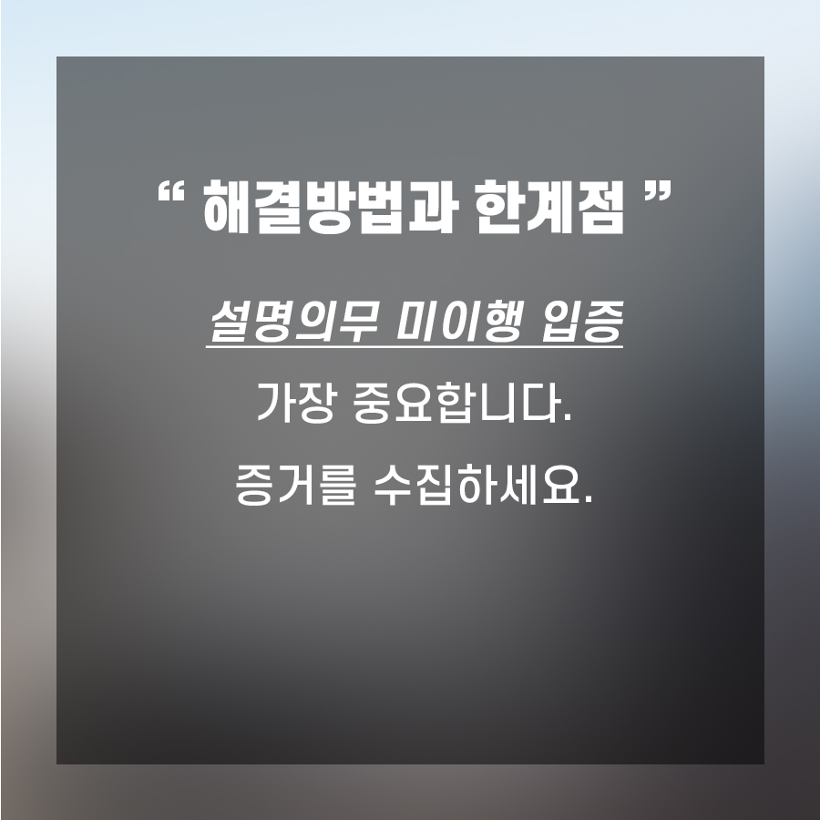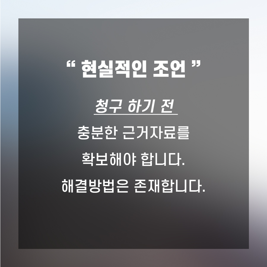애매한 지식을 가진 상태에서 섣불리 대응하면 회사 측은 고객의 약점을 파고들어 면책 근거로 삼을 수 있기 때문에 더 나은 것은 진행 전에 알아보고 청구하는 것이 훨씬 좋습니다.