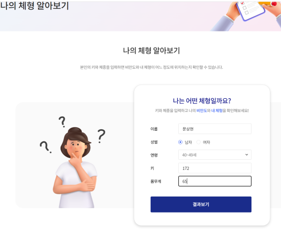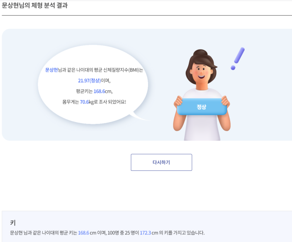 자신의 체형을 조사하는(체형분석) 결과 본인의 체형을 알 수 있습니다.