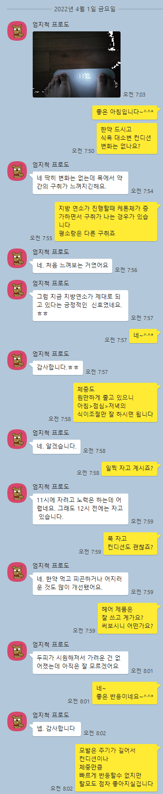 - 한약 복용 2. 식/생활관리(카톡으로) 하다가 (몸무게도 이미 서서히 빠졌습니다.)