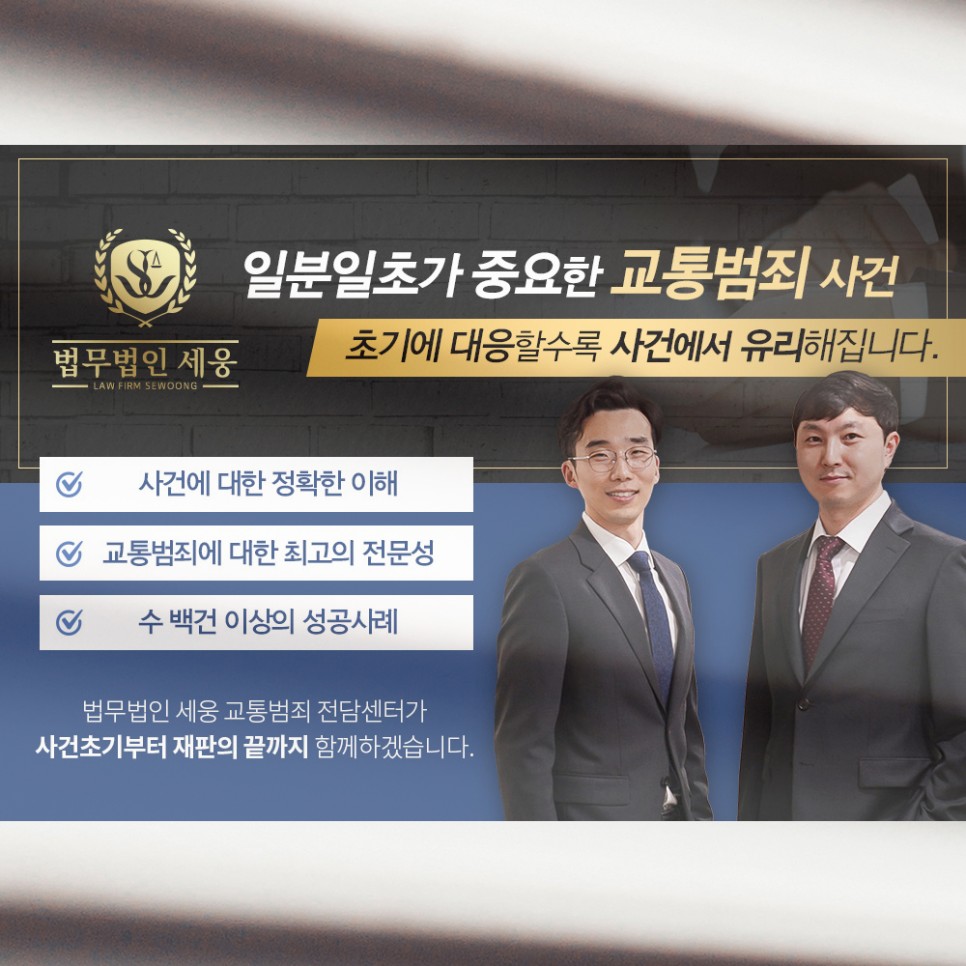 과거의 전력이 있는데도 불구하고 같은 실수로 발생한 음주운전 이진아웃은 무거운 실형을 살 수 있는 위험한 행동이므로 더더욱 해서는 안 되는 것이며, 가장 최선은 술을 마신 뒤 그냥 차량에서 멀어지는 것입니다. 하지만 순간적인 잘못으로 인해 조사가 지속된다면 초기부터 법적 대응을 철저히 할 필요가 있습니다.