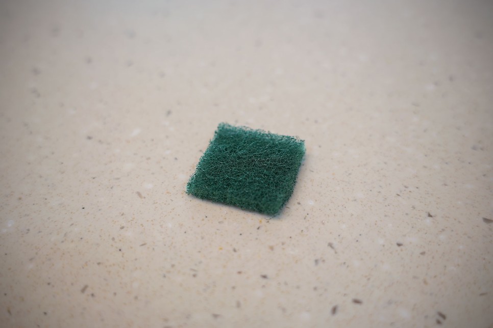 많이 필요 없으니까 그냥 녹색 수세미 한 장을 미리 저렇게 작게 잘라 통에 덜어 놓고 그때마다 하나씩 꺼내 쓴다.
